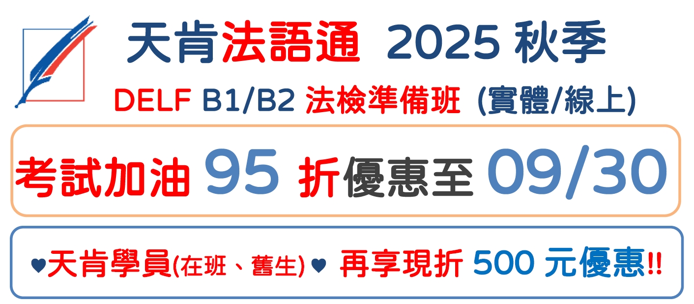報名 | 【2025秋季法檢準備班-DELF B1】 | 0 | 0 |