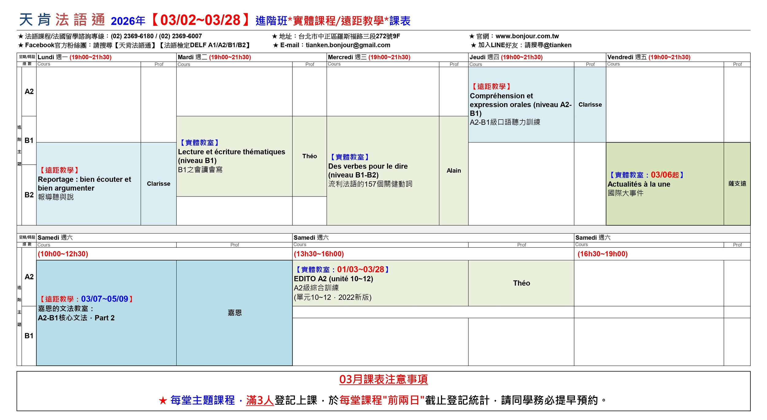 03/02~03/28 平日晚+週六早午 實體/遠距 課表★